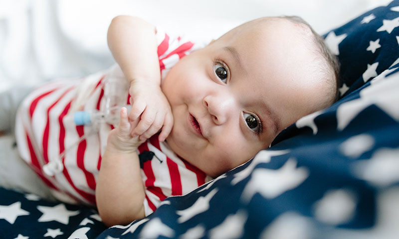 Today, Cruz still requires 24/7 nursing care at home and relies on a ventilator to help him breathe. But he is on track developmentally according to his adjusted age, and he now weighs nearly 17 pounds.