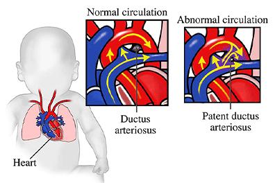 Shortly after birth, this connection should close. If not, it’s called a patent ductus arteriosus (PDA). After birth, a large PDA can allow oxygen-rich blood flow back into the lungs instead of out to the body. The excess blood flow forces your child’s heart and lungs to work harder, which can damage them.